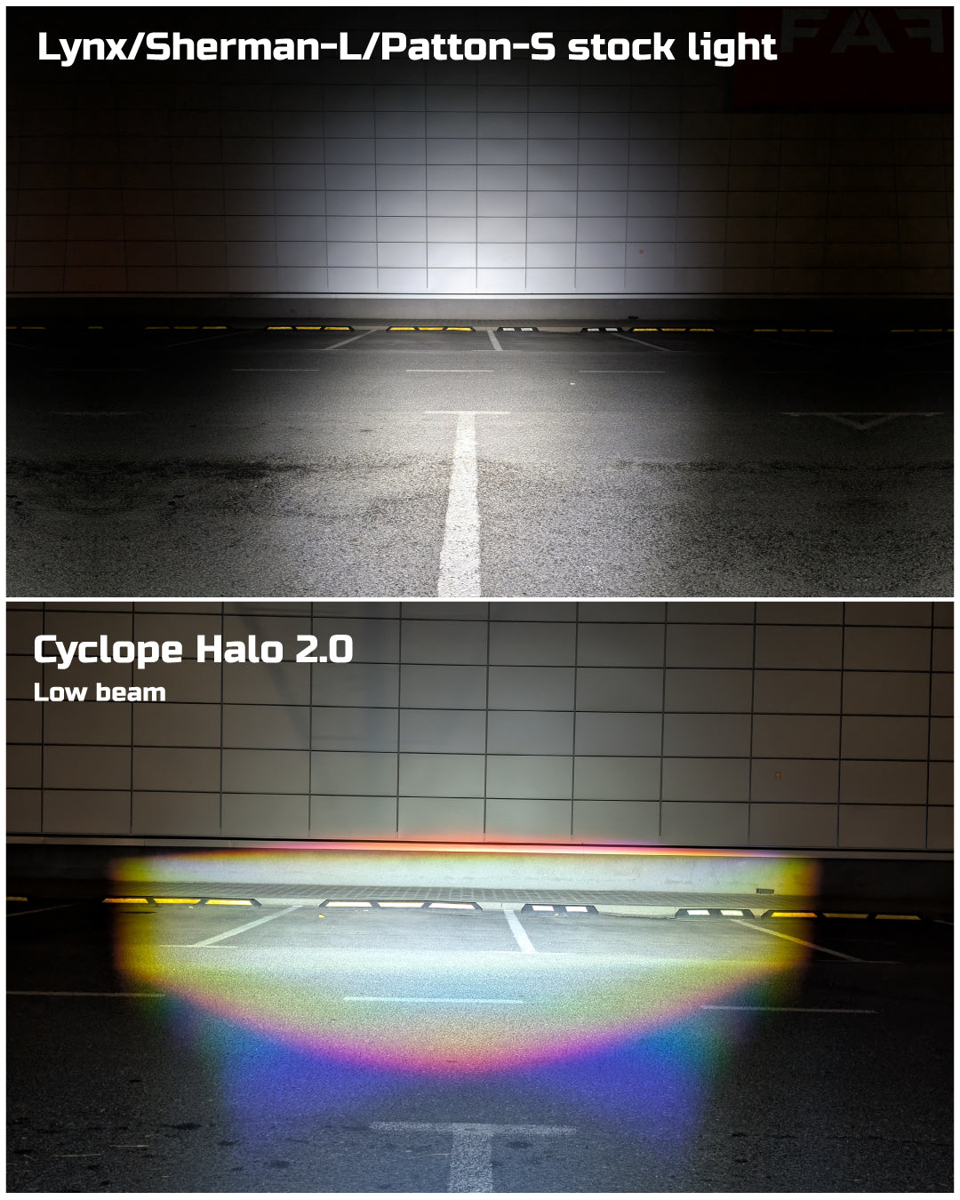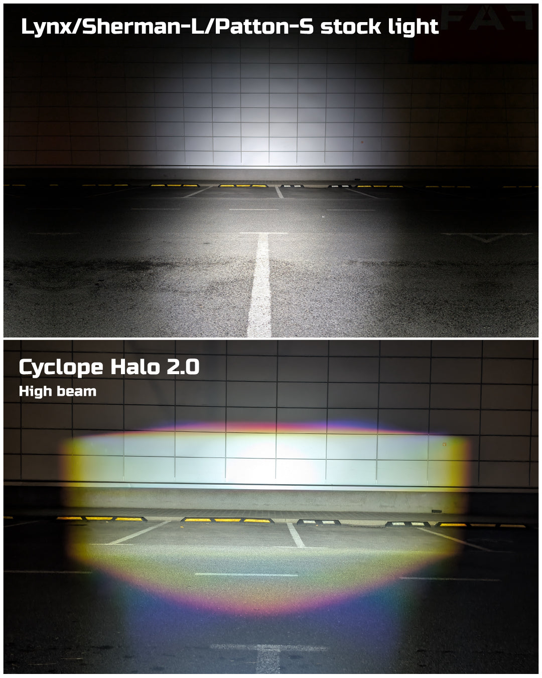 Cyclope Halo 2.0 has got a new main lamp module with slightly more powerful Low beam. The emitted light temperature is the cold white (6000K).