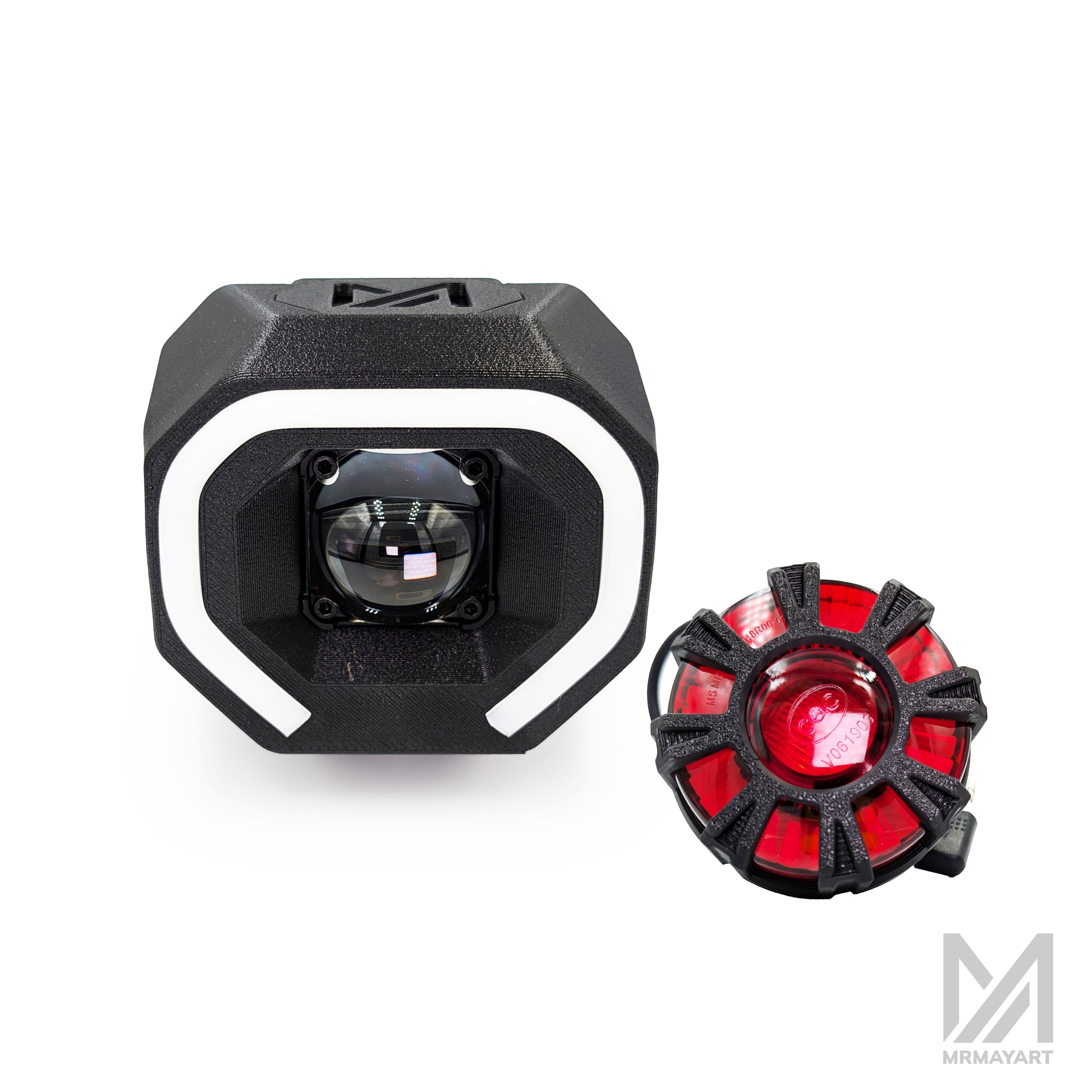 Bundle of lights for Leaperkim Veteran Lynx and Sherman-L unicycle: Cyclope Halo 2.0 front light and Neonowe tail light.